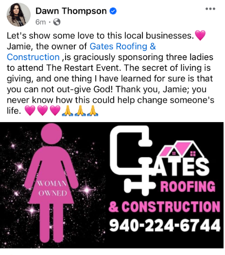 I want to personally thank the best Roofing Company. Gates Roofing & Construction has you from start to finish with your insurance to get your house done the right way. They go above and beyond to make your house better than it was before the damage happened. Jamie Gates owns Gates Roofing and yes woman owned and is the absolute best Roofing Company and locally owned. Gates did all the work at my house and I'm so happy with the work they did. My house looks better than it ever has. If you need a new roof or construction call Gates Roofing and Construction.They are the best and highly recommended.